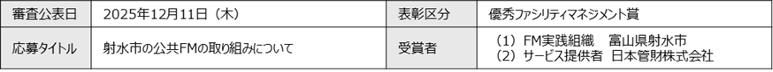 NEWS 2025.12.22(月) 射水市の公共FMの取り組みがJFMA賞を受賞、サービス提供者として日本管財も同時表彰されました